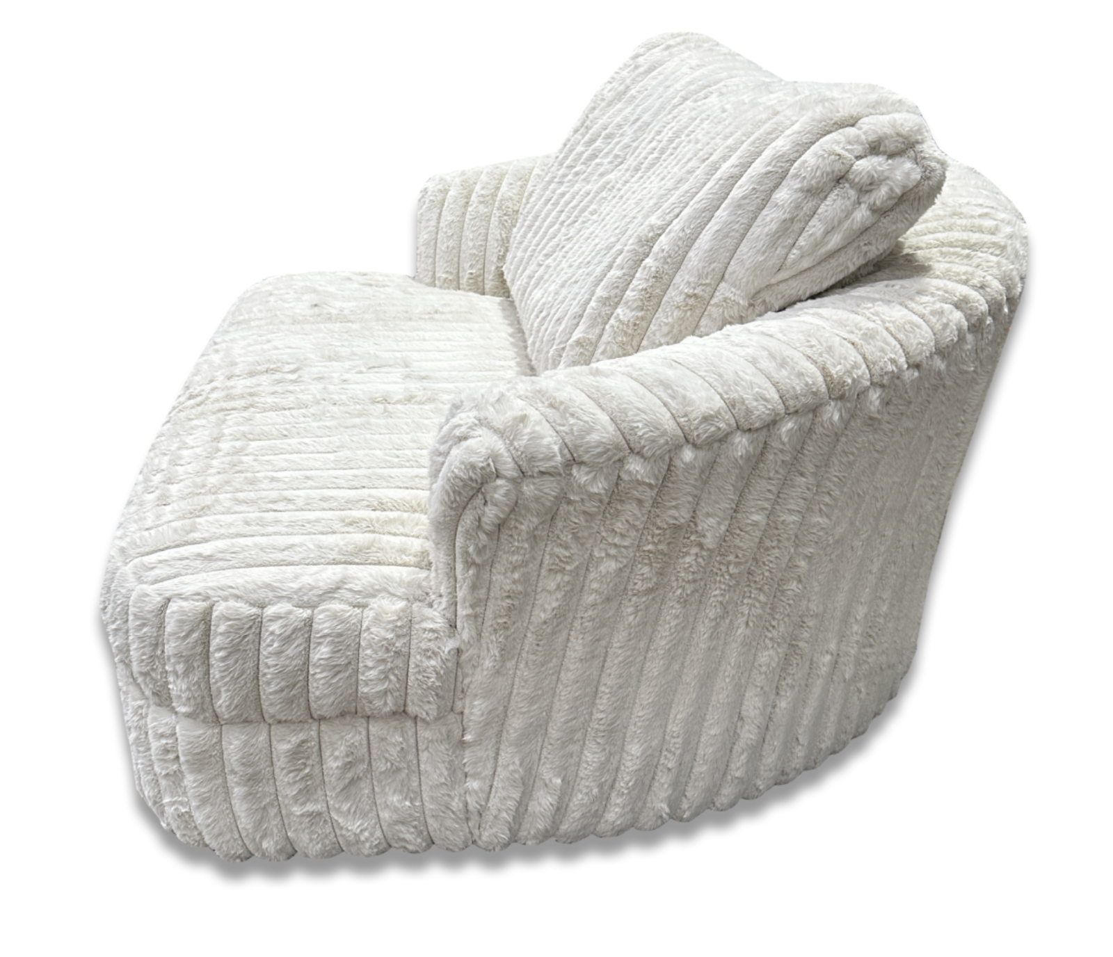 Experience modern luxury and effortless comfort with the NUGE Oversized Swivel Chair. Designed with a deep seat and a generously cushioned backrest, NUGE provides exceptional support for lounging, reading, or relaxing. Its plush ribbed upholstery, adds refined texture and timeless elegance to any space. The smooth swivel base combines functionality with style, making NUGE a versatile statement piece that enhances the comfort and sophistication of your home. It serves as a statement piece for living rooms, bedrooms, or reading nooks, offering both elegance and everyday functionality.