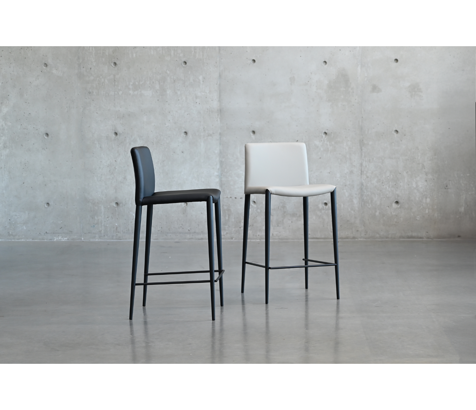 Sophisticated and effortlessly modern, our Zade Counter Stool is a refined addition to any dining space. Fully wrapped in a high grade taupe leatherette cover, the sleek silhouette with gently contoured back offer both style and support. Whether you're hosting an intimate dinner or a lively gathering, Zade delivers comfort and timeless elegance.